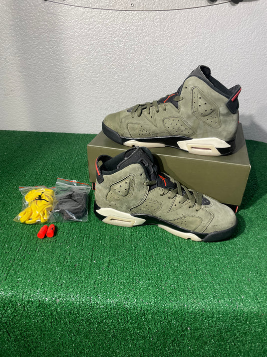 (Used Size 7Y) Travis Scott Olive Jordan 6