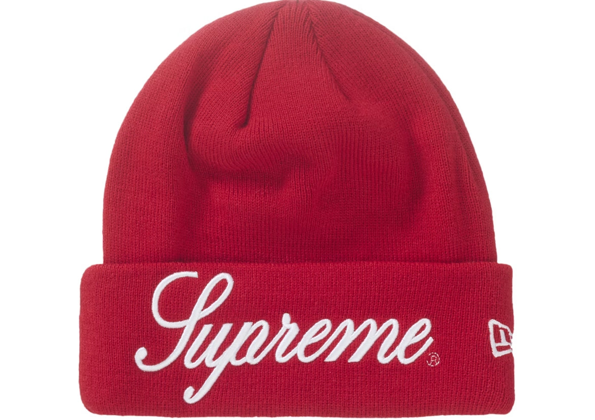 Supreme New Era Script Logo Beanie Red FW24